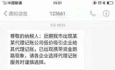 代理记账公司:最近,一条税务提醒的短信截图在朋友圈内不断传播,特别是代理记账从业者们,大多都转发了此图,