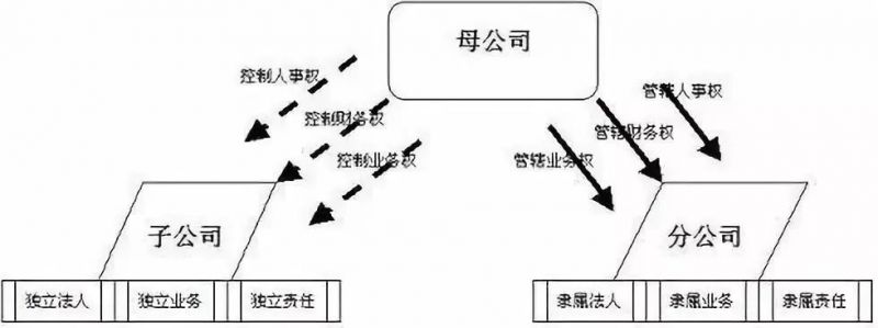 3)受控制方式不同。母公司对子公司一般不直接控制,多采用间接控制方式,即通过做出投资决策以及任免子公司董事会成员来影响子公司的生产经营活动。而分公司则不然,其财产、业务、人事受总公司直接控制,并只能在总公司的经营范围内从事经营活动。