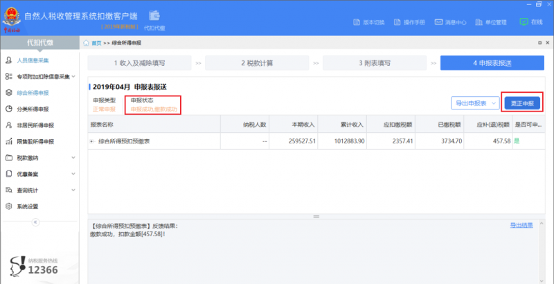 ③点击【更正申报】按钮,开始启动更正申报功能