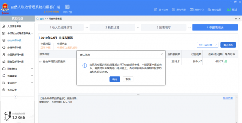 1.进入更正申报以后,系统会提示更正申报成功后,需要对后续税款所属期的综合所得预扣预缴申报表进行逐月更正。