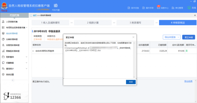 2启动更正时,系统会自动导出一份当前有效的申报记录供纳税人留存备用并提示保存路径(默认为桌面)每次导出的备份文件可根据时间不同进行区分.如果需要取消/启用该功能可以在【系统设置】-【申报管理】-【更正申报备份】中设置.但因取消而导致无法找回原始记录的,扣缴单位需自行承担后果。