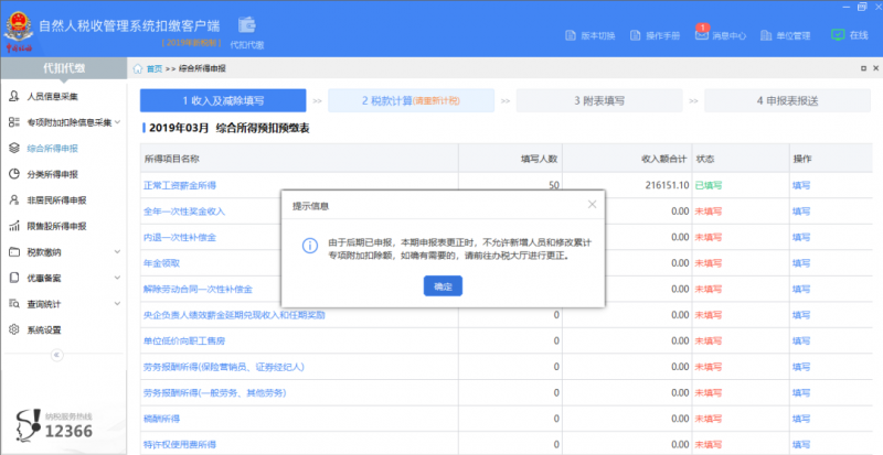 注意:如果该期申报表的本期收入、本期扣除等本期数据不存在错误,仅是因为之前的税款所属期进行了更正申报而需要逐月更正的,则可直接跳到【2税款计算】步骤.
